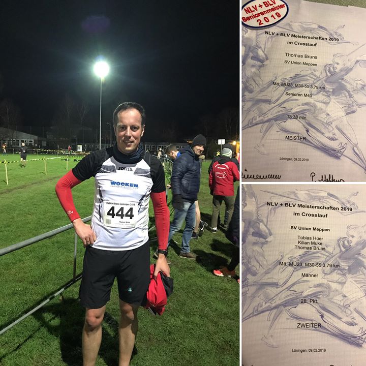 Das „Tief Thomas“ war verdammt stürmisch heute. Mir hat‘s in Löningen Glück gebracht. Extrem hart erarbeitete 7 Sekunden Vorsprung habe ich auf den Zweiten herauslaufen können. D.h. „Senioren-Niedersachsenmeister“ 👴